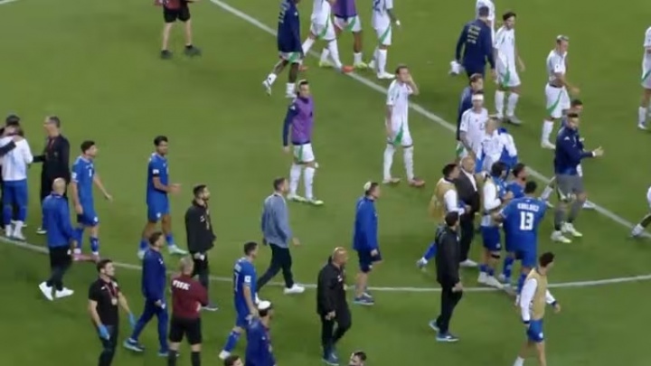 在意大利5-4以色列的比赛末段,场上爆发了一场小规模的混乱。在这场混乱中,意大利门将多纳鲁马情绪激动。
