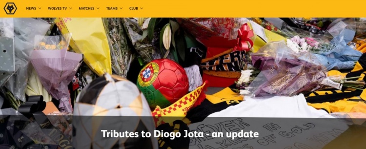 7月14日讯 狼队官网表示,在过去的一周里,莫利诺克斯球场外成为了对若塔及其弟弟安德烈的感人纪念场所,俱乐部对所有前来悼念并留下寄语、球衣、围巾和鲜花的人表示衷心感谢。